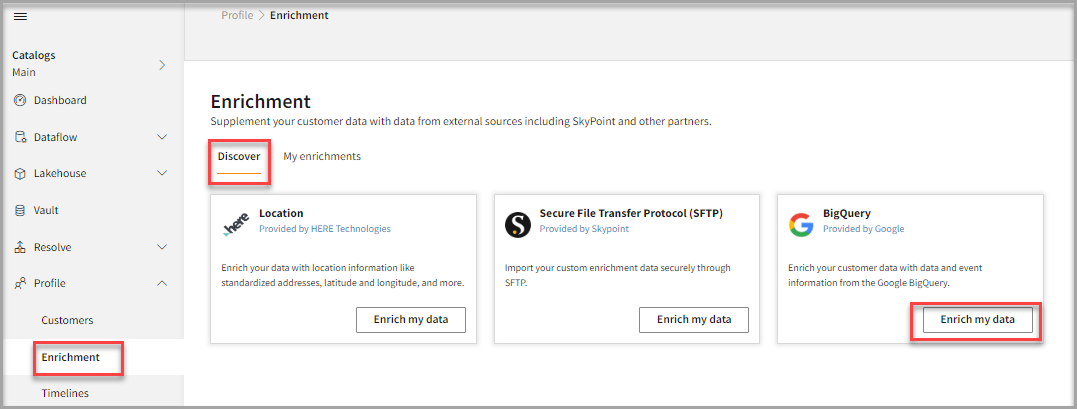 To configure BigQuery enrichment, the following prerequisites must be met:- You have an active customer profile.