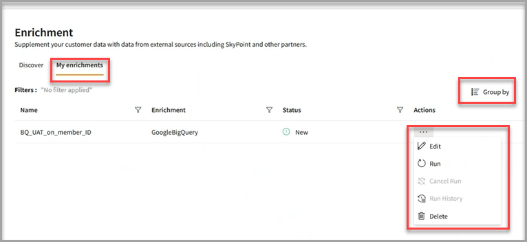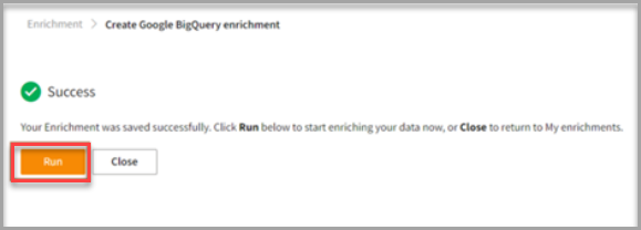 - After the run process, click the My Enrichments tab to see the BigQuery enrichment.