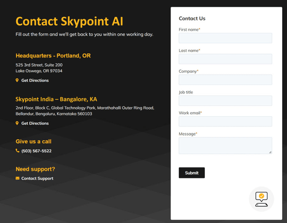 Once you submit the Contact us form, Skypoint’s team will get back to you within one working day.