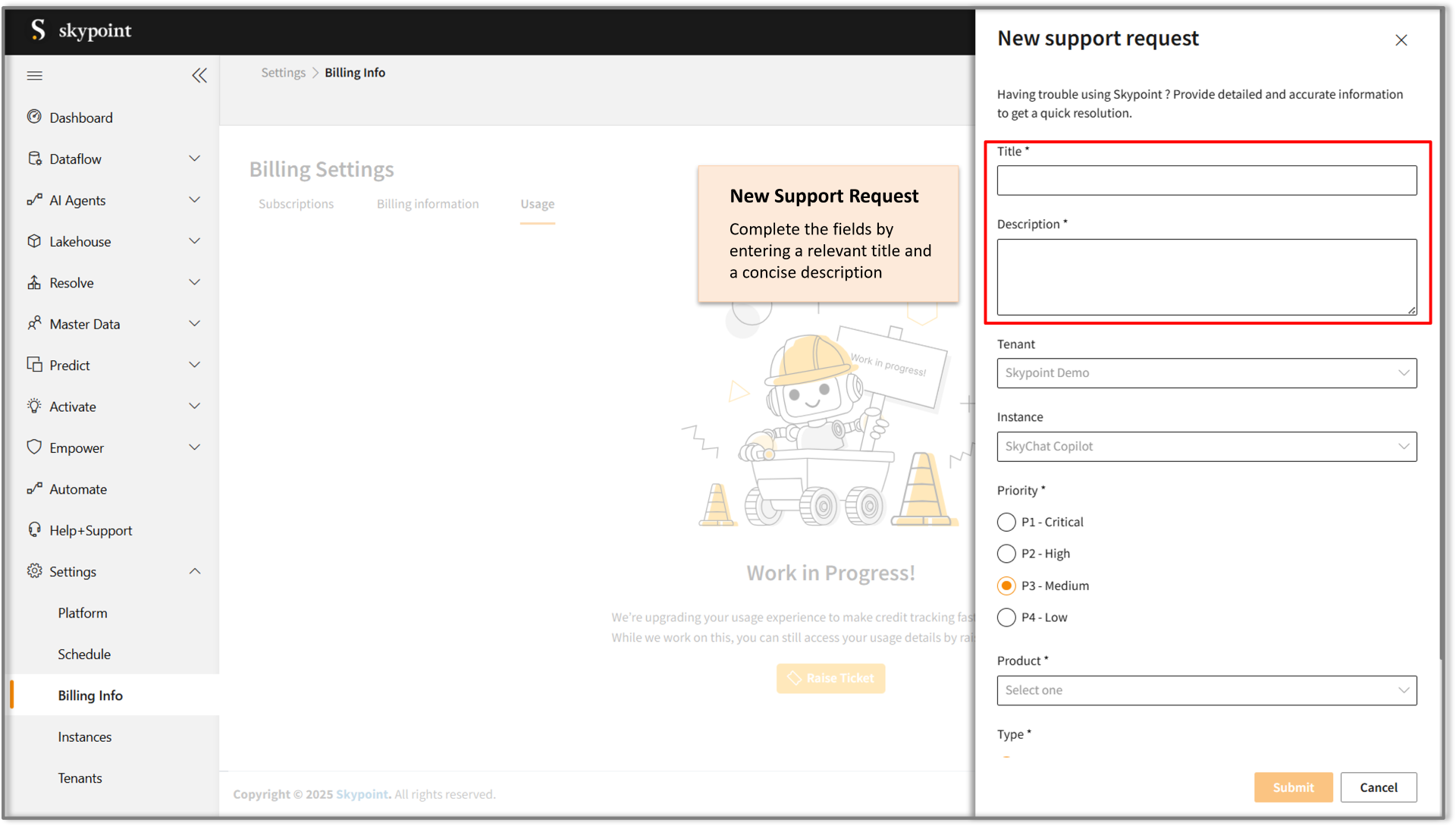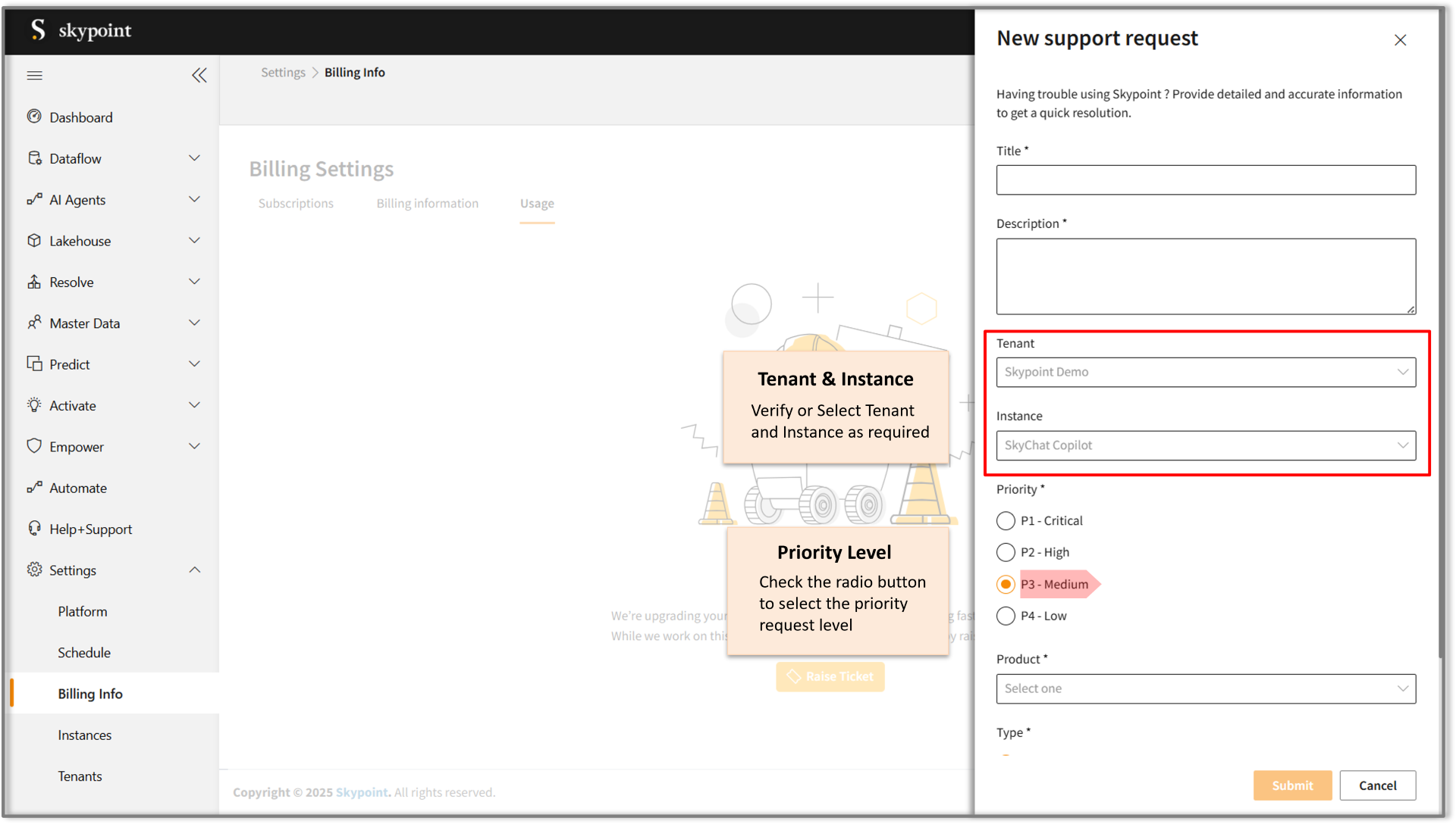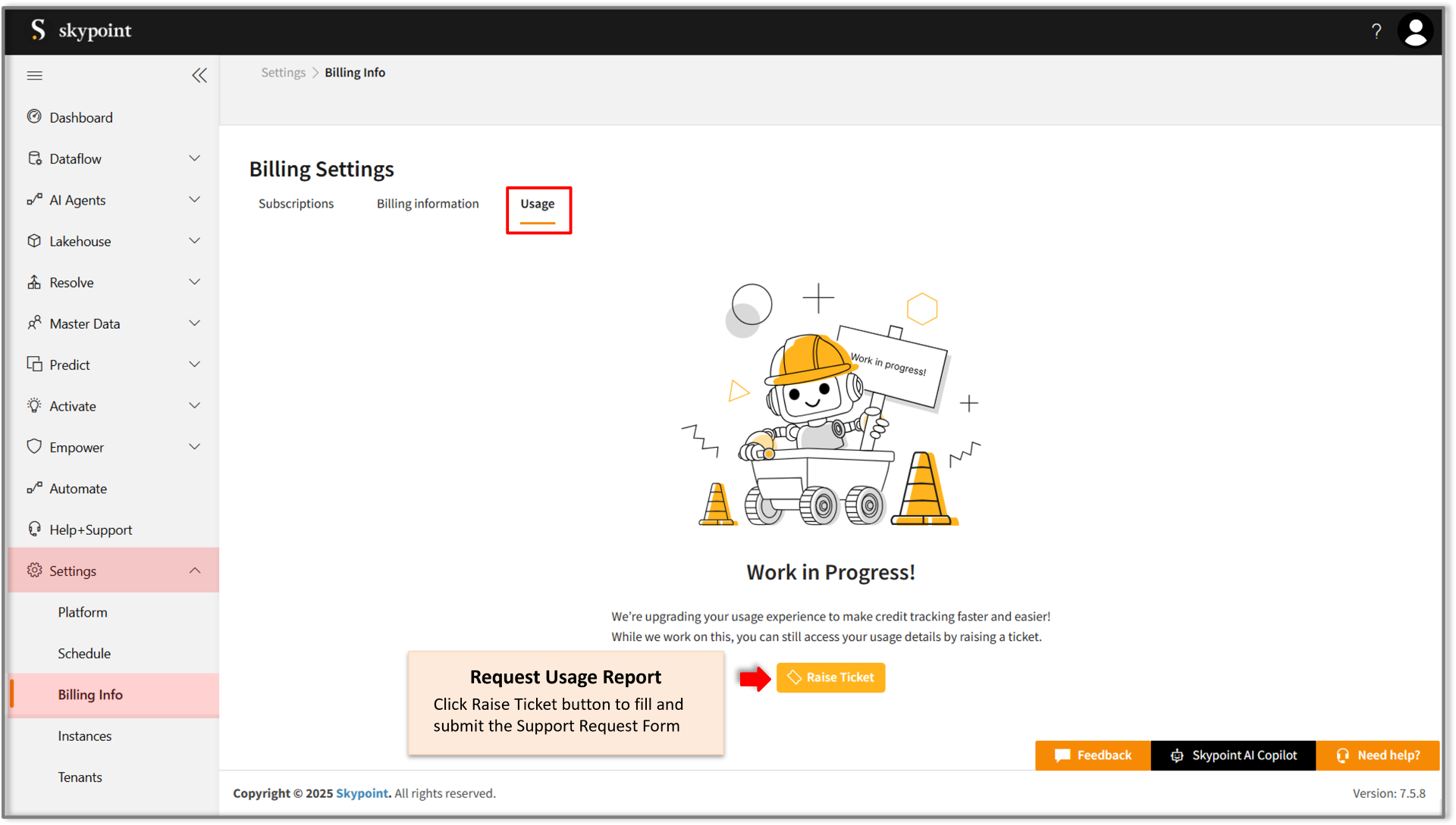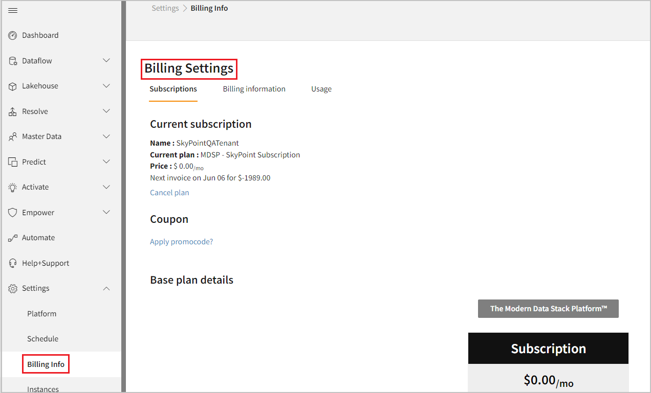 You should have the following prerequisites to check your Billing Settings:- An active billing plan with Skypoint AI.