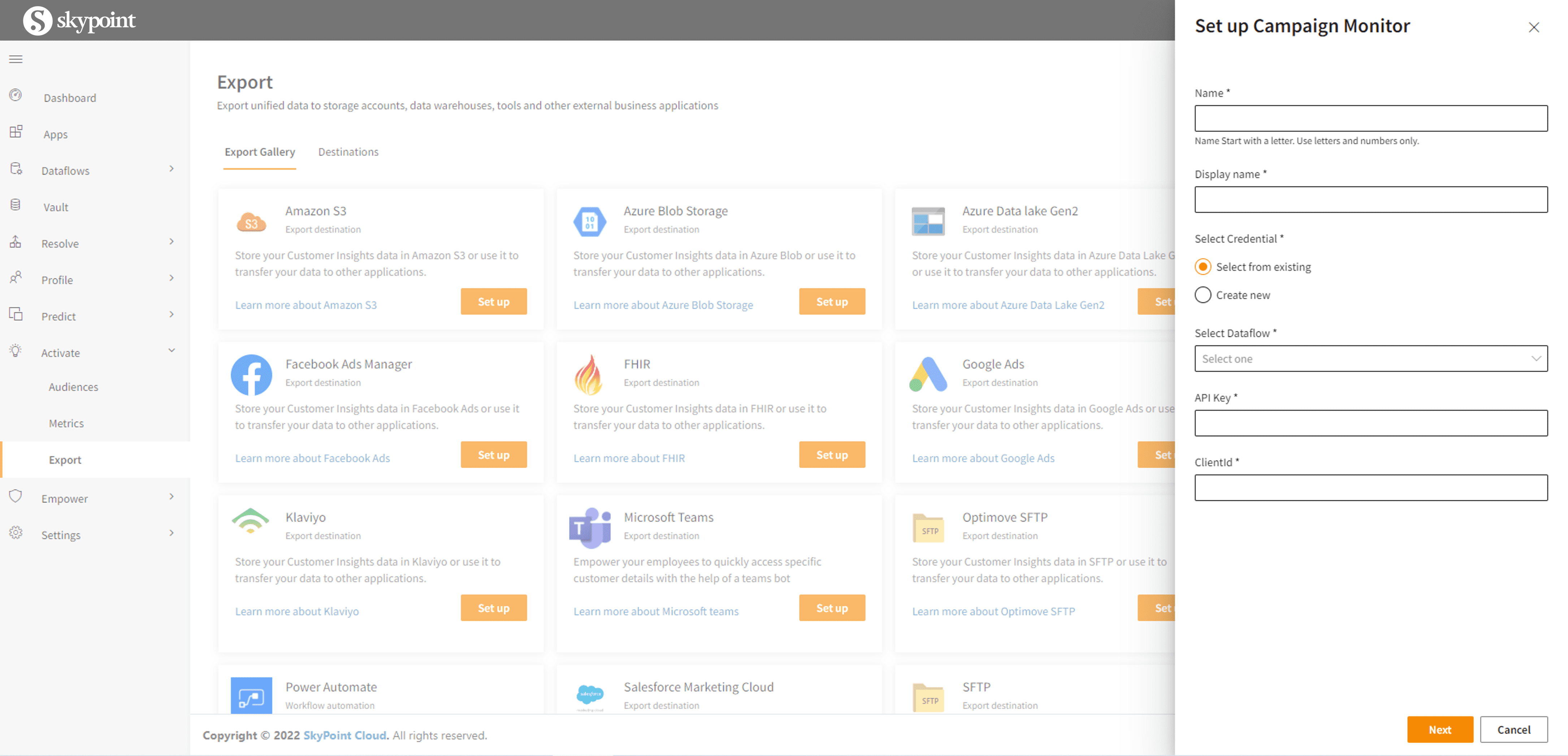 Export lets you extract data from the Lakehouse and load it into Campaign Monitor.