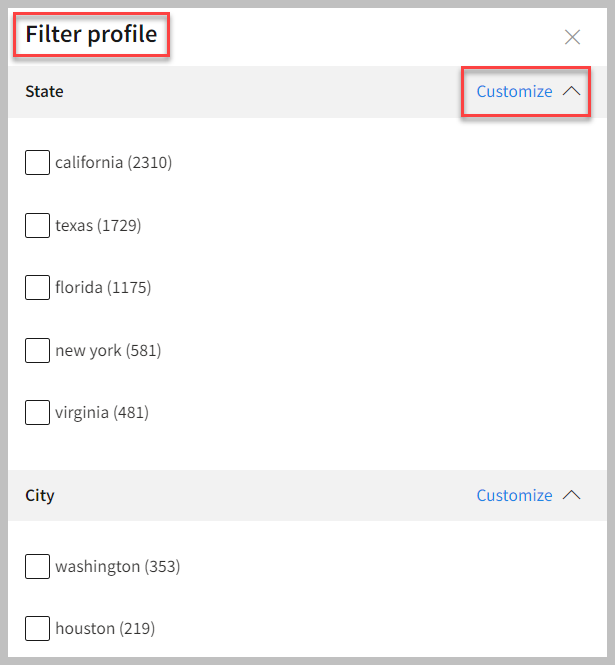 - Check the boxes that you want to filter. You can see the selected attributes on the Profiles page. You can select up to 20 attributes.