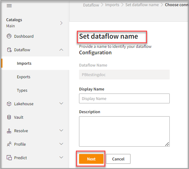 - In the Set dataflow name, enter the Display Name to identify your dataflow.
