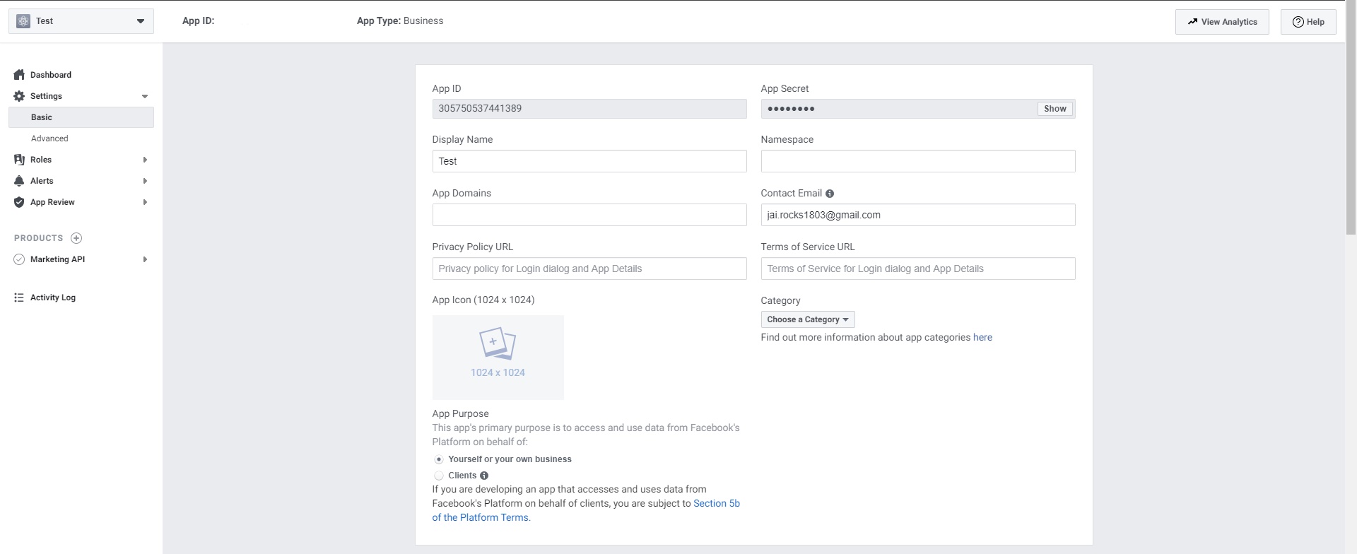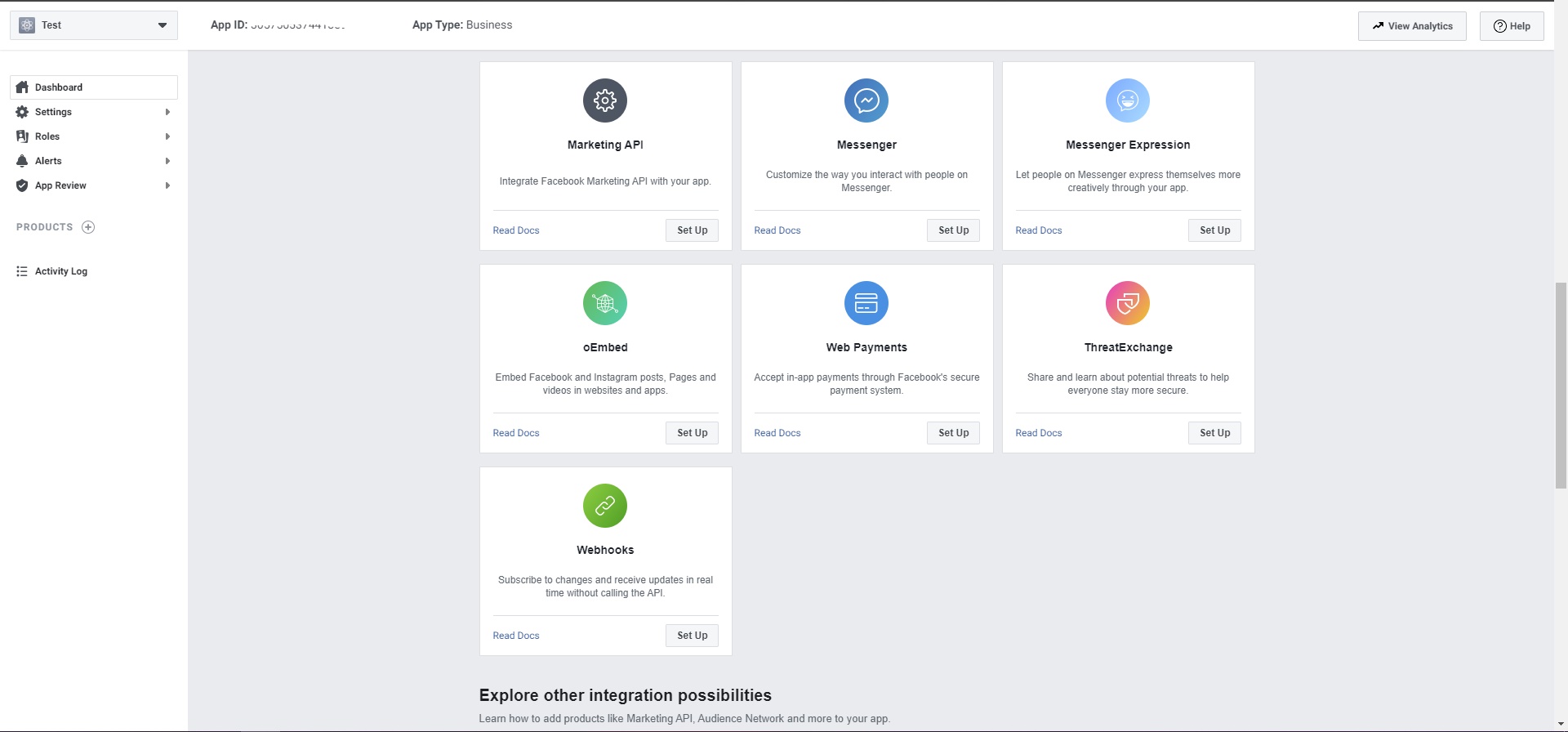 - The last thing that you need to do is to Integrate the Facebook Marketing API with your app. Under the section Add Products to your App, watch out for Marketing API and click on Set Up.
