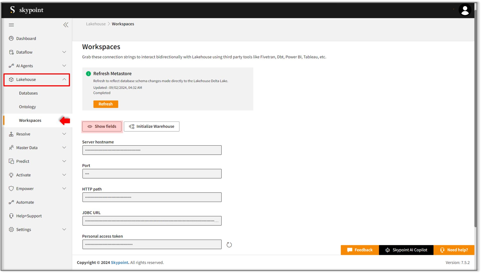 - Key in the required credentials by copying from Skypoint AI Studio.