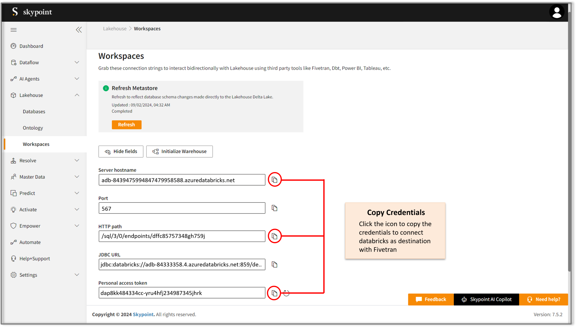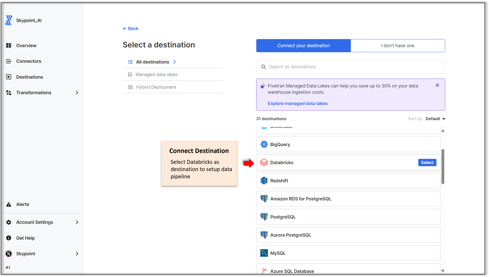 Step 2: Connect Fivetran to Databricks on Skypoint AIP