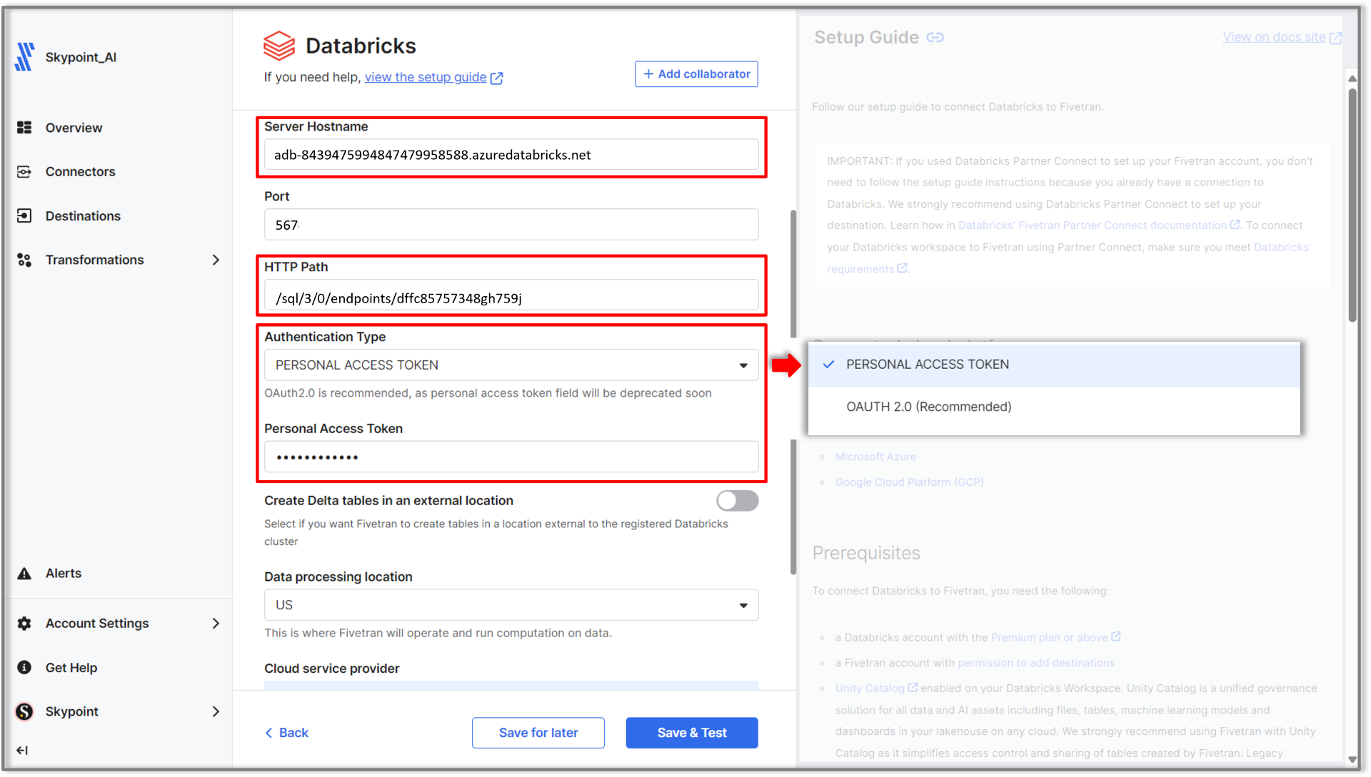 Setup Guide to Connect Fivetran and Databricks on Skypoint AIP