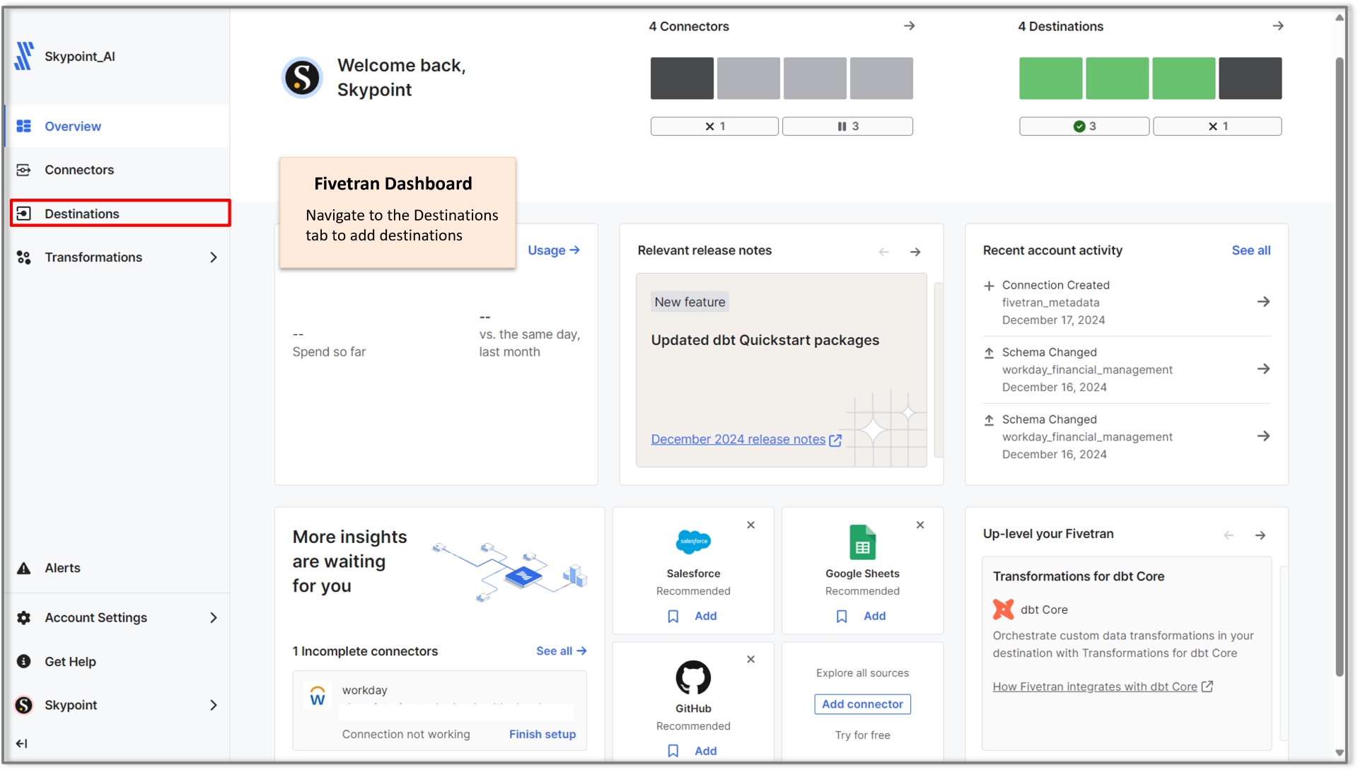 - You have an active account with Fivetran and Skypoint AIP & credentials to access them.
