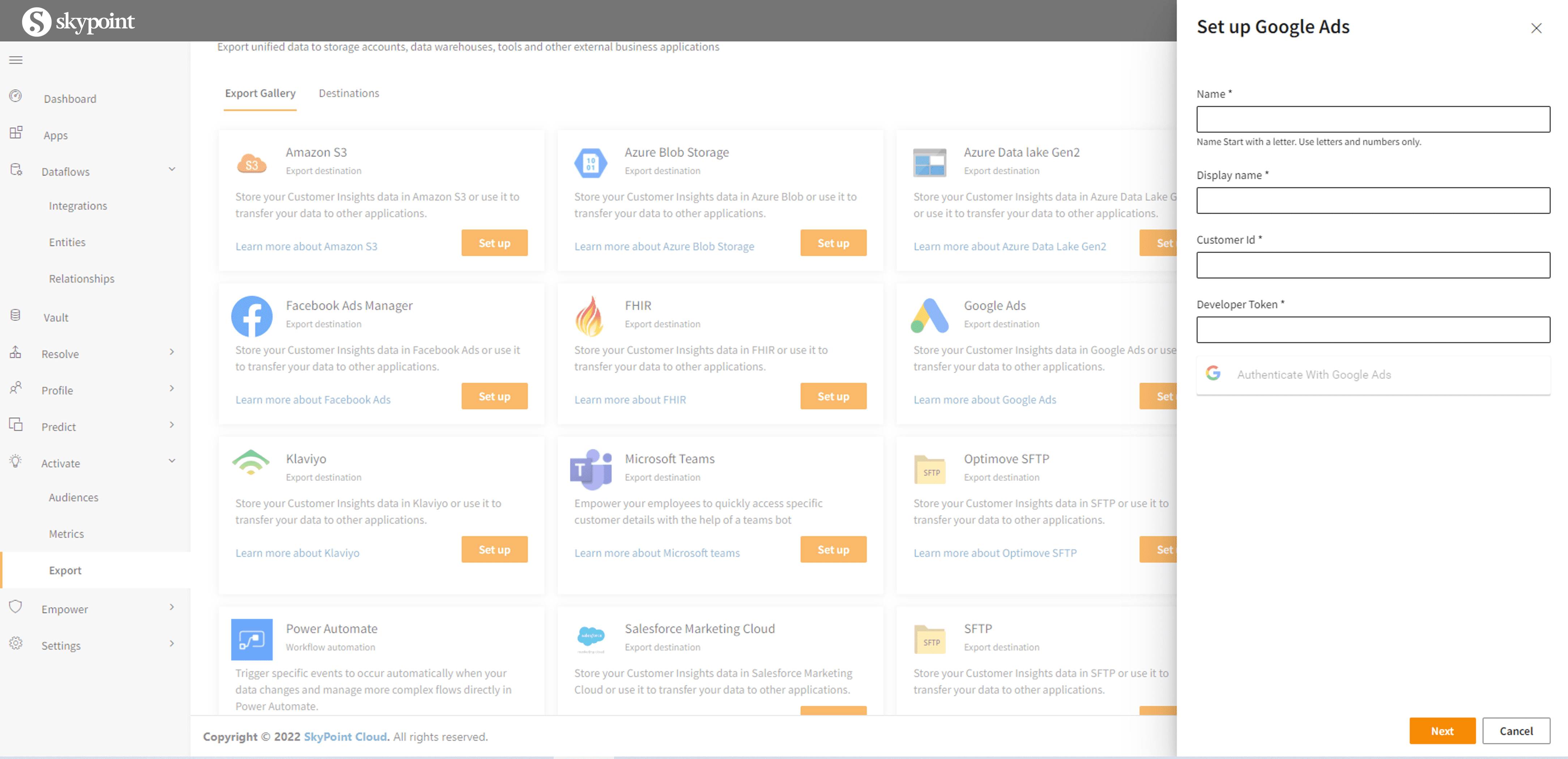 Export lets you extract data from the Lakehouse and load into Google Ads Manager.