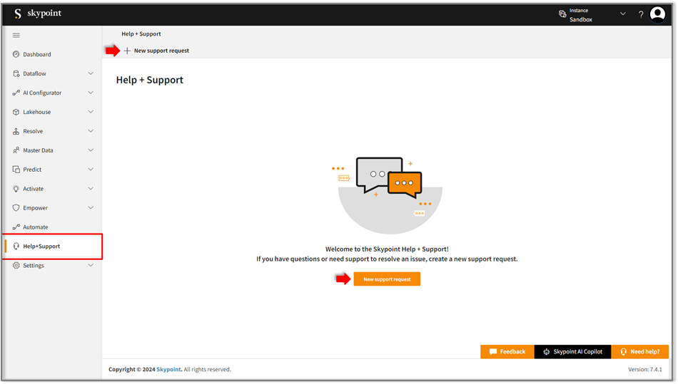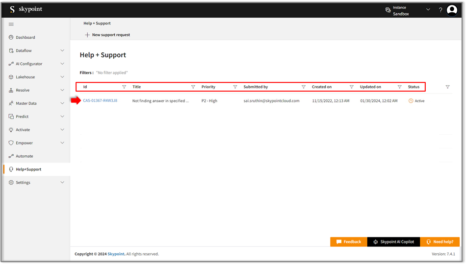 Now you can raise a support request by following ways mentioned below:- Raise a support ticket from Skypoint AI Studio.