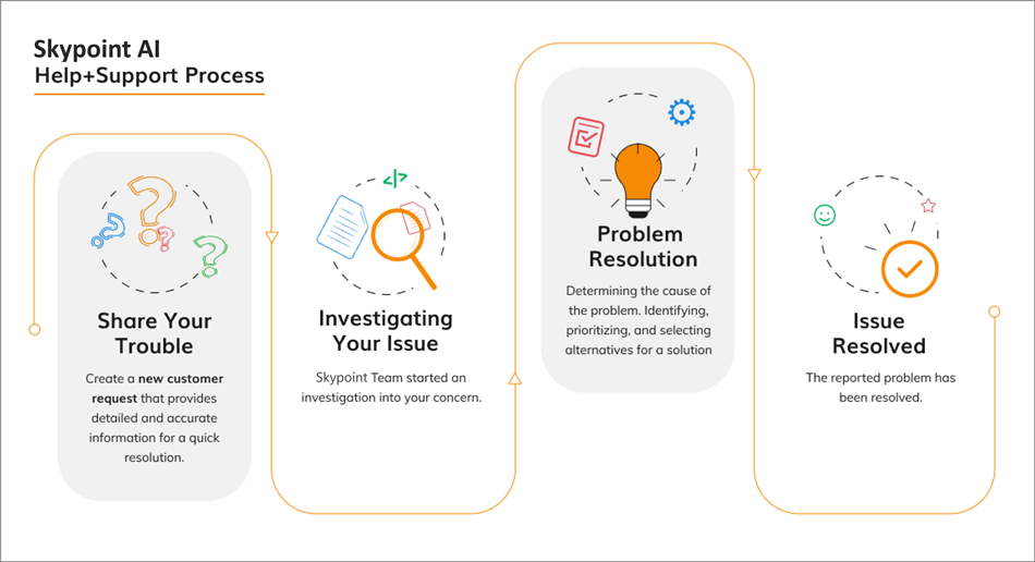 Get the help you need from Skypoint AI’s technical experts to achieve great results quickly and efficiently. Use Help+Support to contact the Skypoint AI technical support team for comprehensive assistance, allowing you to maintain business as usual, improve performance, and save time for more critical tasks.Ways to Raise Request Support