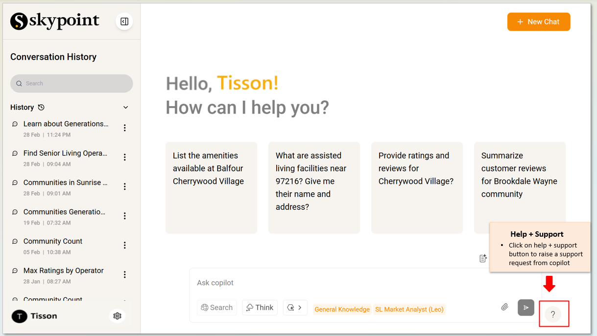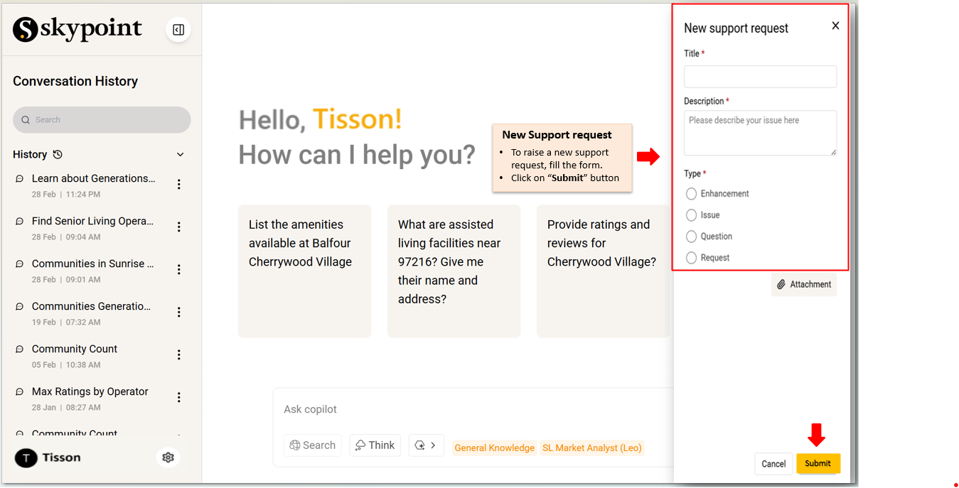- Raise a support ticket from Skypoint AI Copilot.