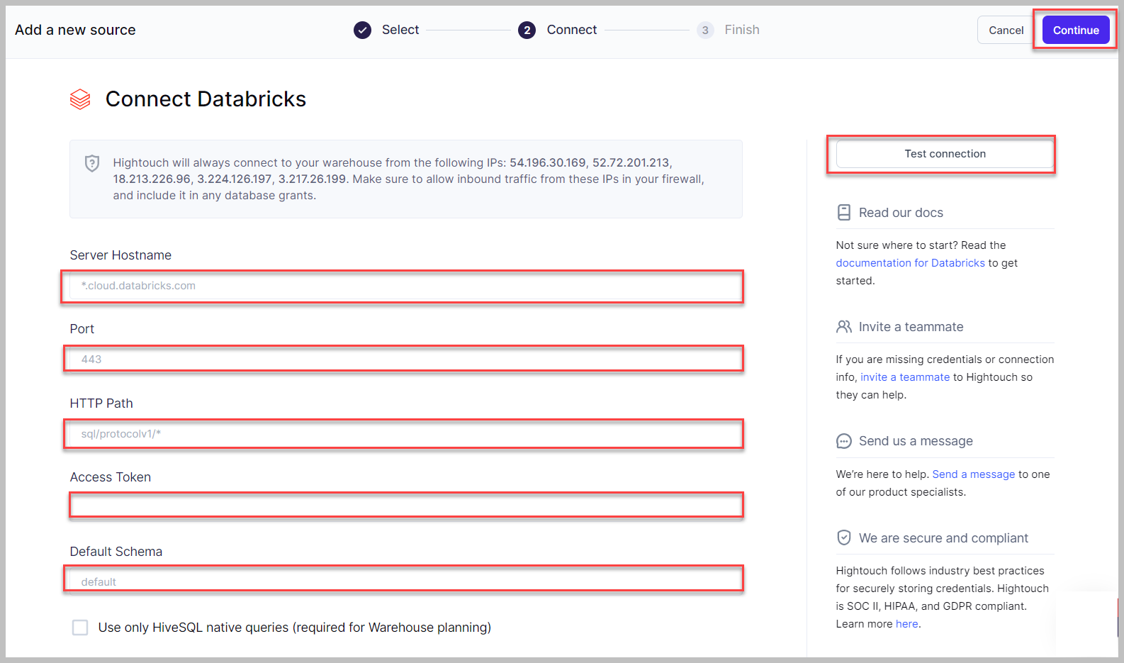 Follow the below steps to integrate Hightouch with Lakehouse SQL: