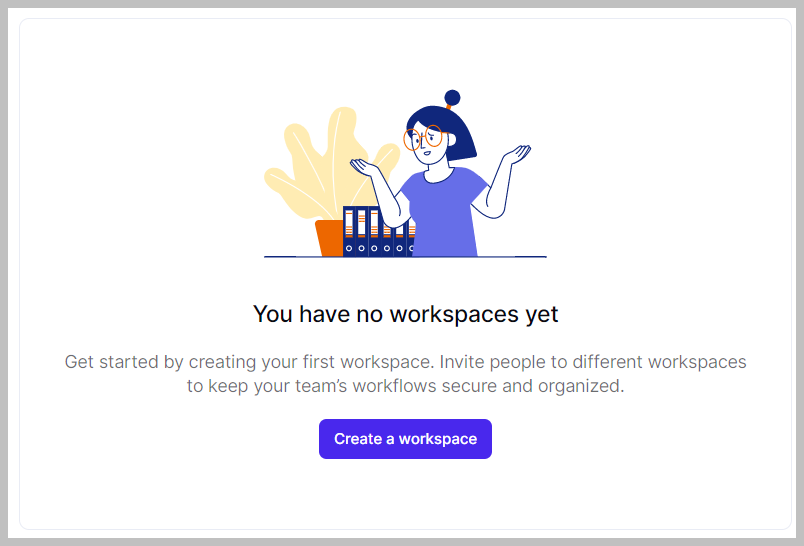 - Click Create a workspace to create a new workspace. If you have already created a workspace, then select an existing one.