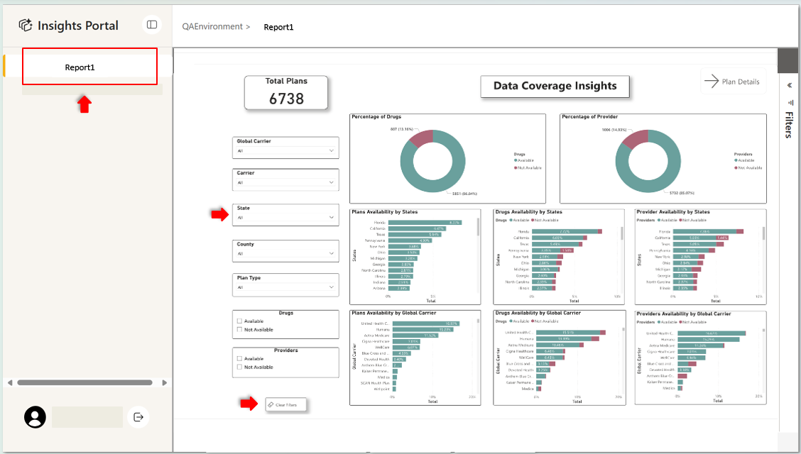 - You can switch to another report by clicking on the reports listed in the left panel.