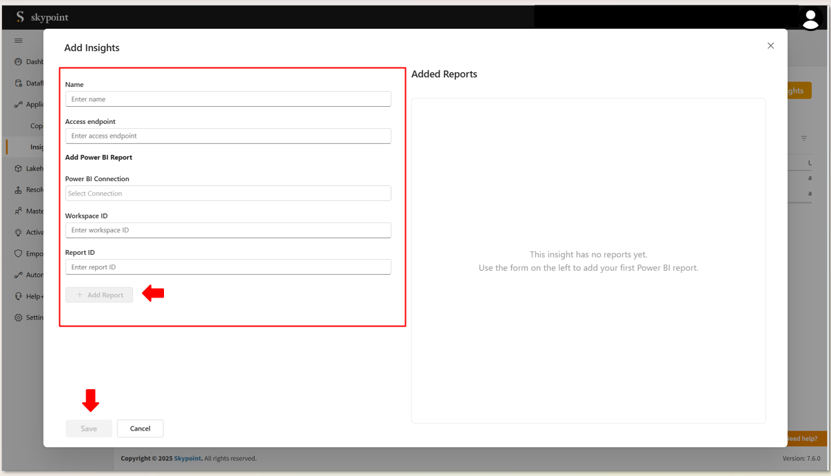 Skypoint AI Insights feature integrates Power BI’s reporting capabilities into the Skypoint platform, providing a seamless and secure analytics experience. Instance Admins and above can create custom Insights, each accessible through a customized unique web URL. By organising multiple Power BI reports under a single Insight, this feature delivers a centralized and efficient way to manage and present analytics. It streamlines data access, enables informed decision-making, and enhances operational efficiency across teams.How to configure and manage Insights on Skypoint AI Studio