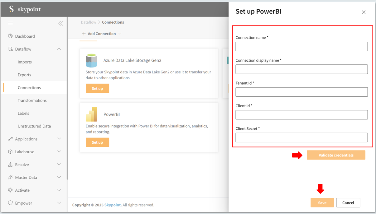 User can create Insights on Skypoint AI studio by following the below steps:A. To setup a connection