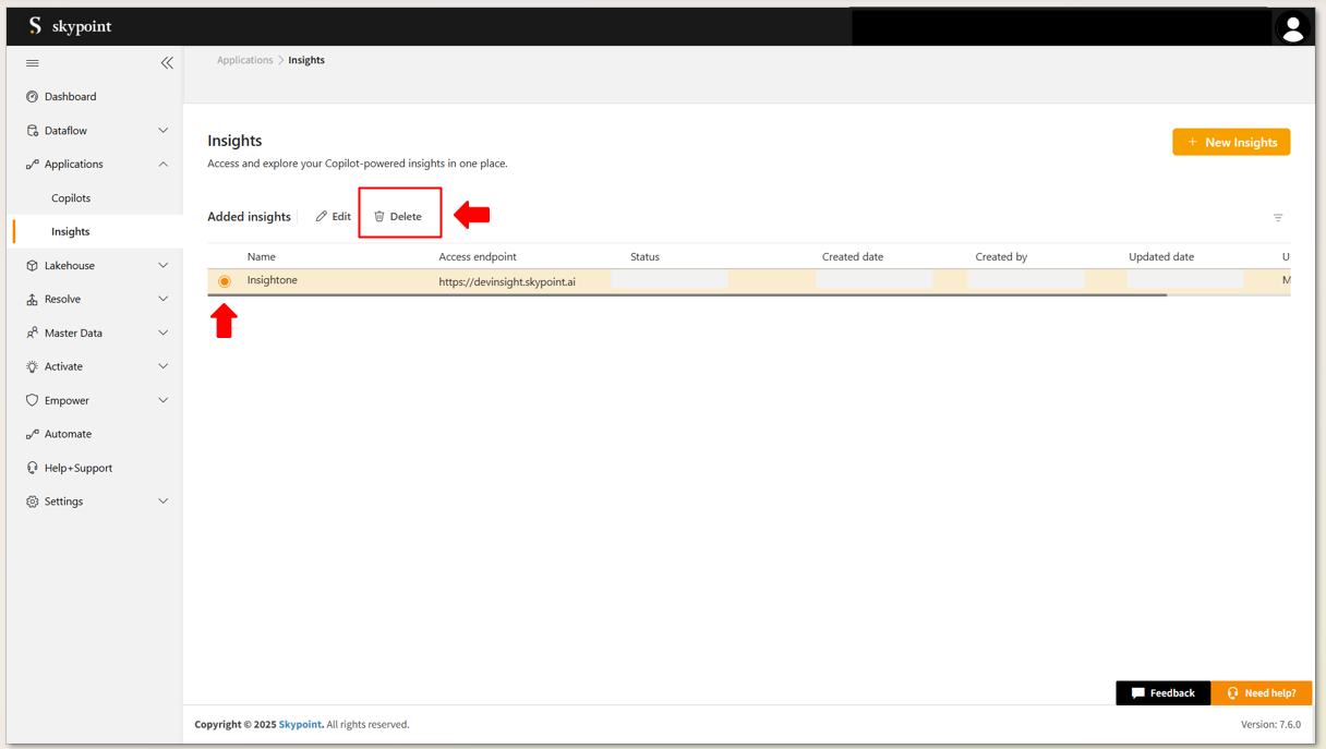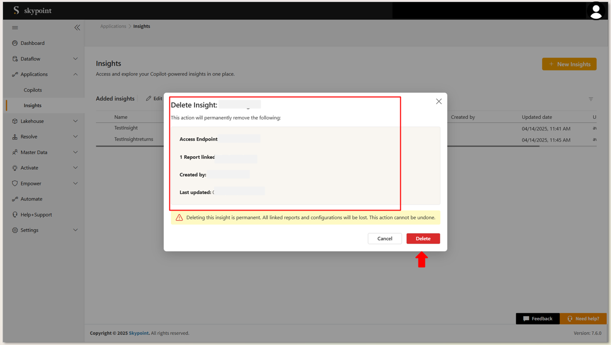 Once an Insight is deleted, it is permanently removed and cannot be undone. Please proceed with caution.