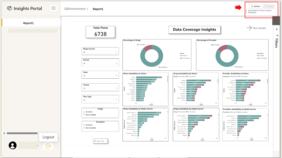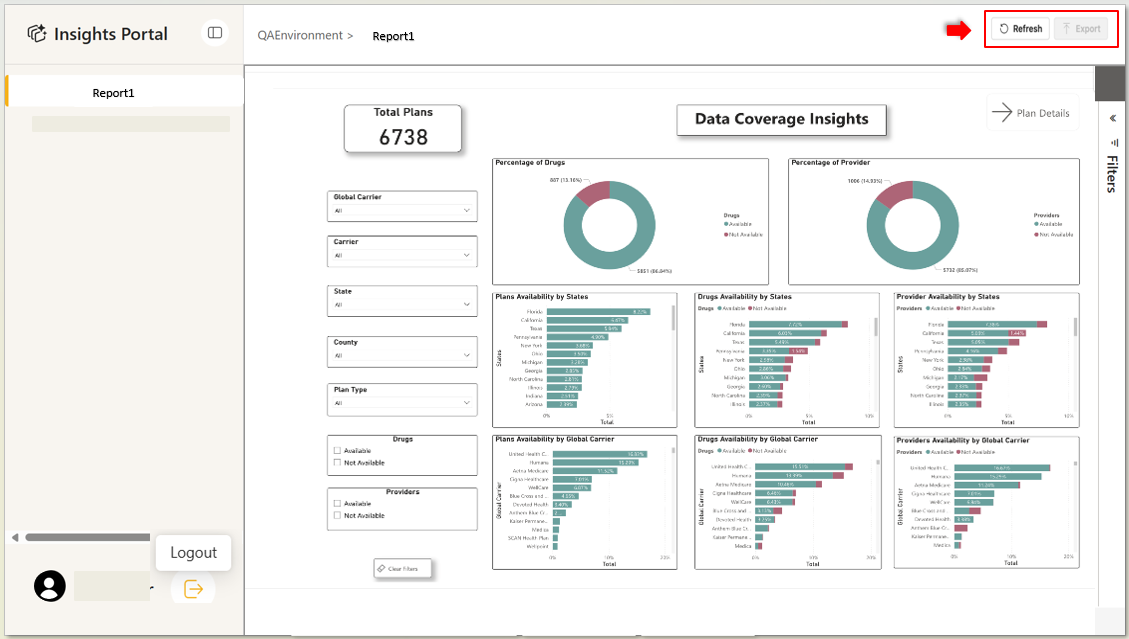 - To export the report, click the Export button at the top-right corner of the report panel.