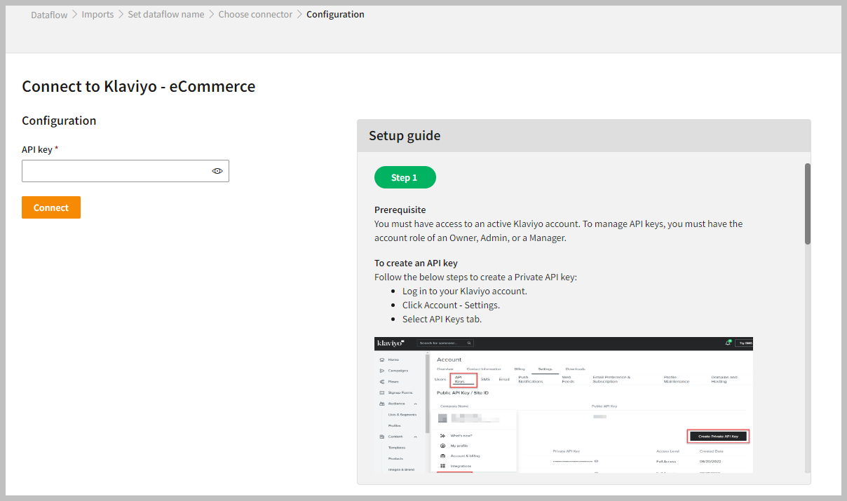 You will need the following details to configure and import data using Klaviyo:- Klaviyo Account