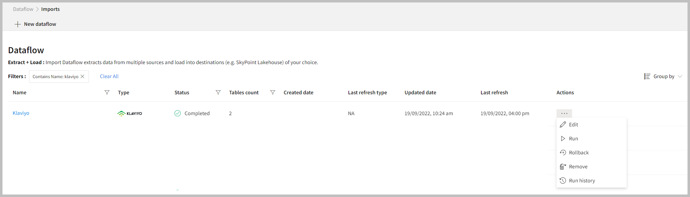 | Modify the Dataflow | Select Edit and modify the Dataflow. Click Save to apply your changes. |