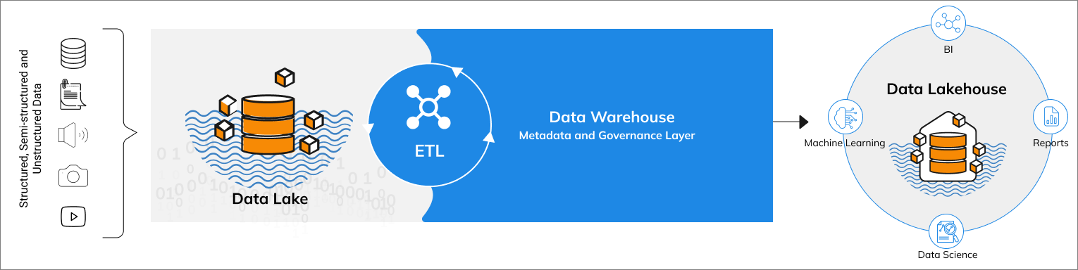 It takes the unstructured data from a data lake and utilizes the management features and tools from data warehouses to implement them together as a larger system. You can simplify and scale your enterprise data strategy while supporting Business Intelligence (BI) and Artificial Intelligence (AI) use cases in one place utilizing Databricks as the primary computing engine.