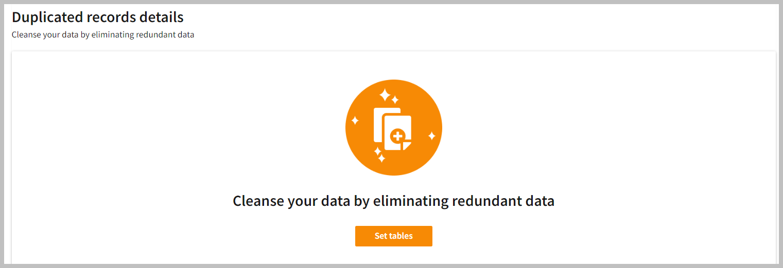 - In the Duplicated records details section, select Set tables. If deduplication rules are already set then you can click Edit to modify the tables.