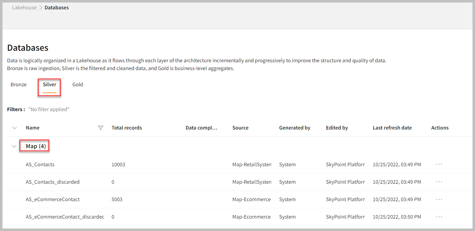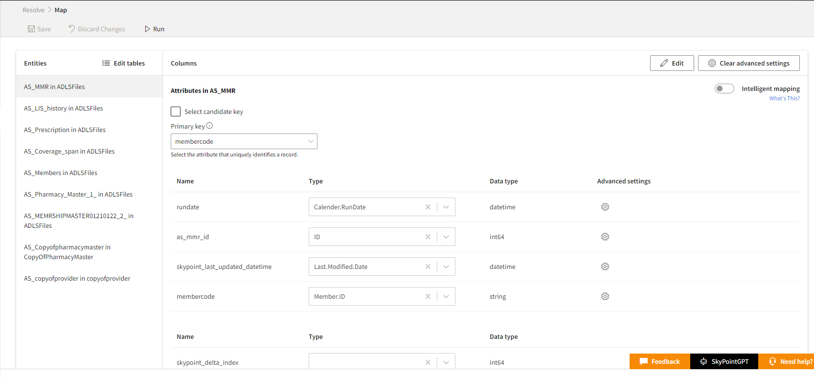 Mapping is the first step in Master Data Management (MDM) for data unification. Once the data import is completed, map the attributes of imported data with their semantic labels. In the mapping process, you need to do the semantic mapping to get the data into the Lakehouse SQL and prepare it for the Unify (match and merge) process. In Skypoint AI MDM, you need to map data fields from different business systems or databases in order to consolidate the data into a single, consistent repository. The mapping process consists of the following steps:- Table selection: Identify and select those tables for mapping which have complete information about your customers.