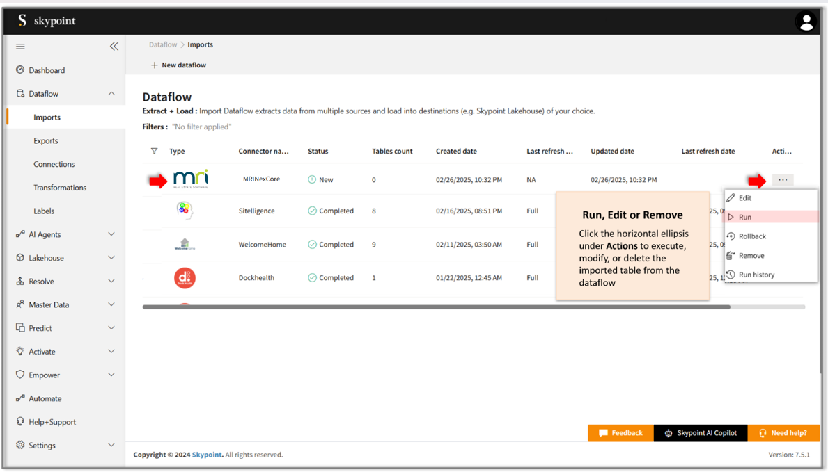 Run, Edit, and Delete the imported data