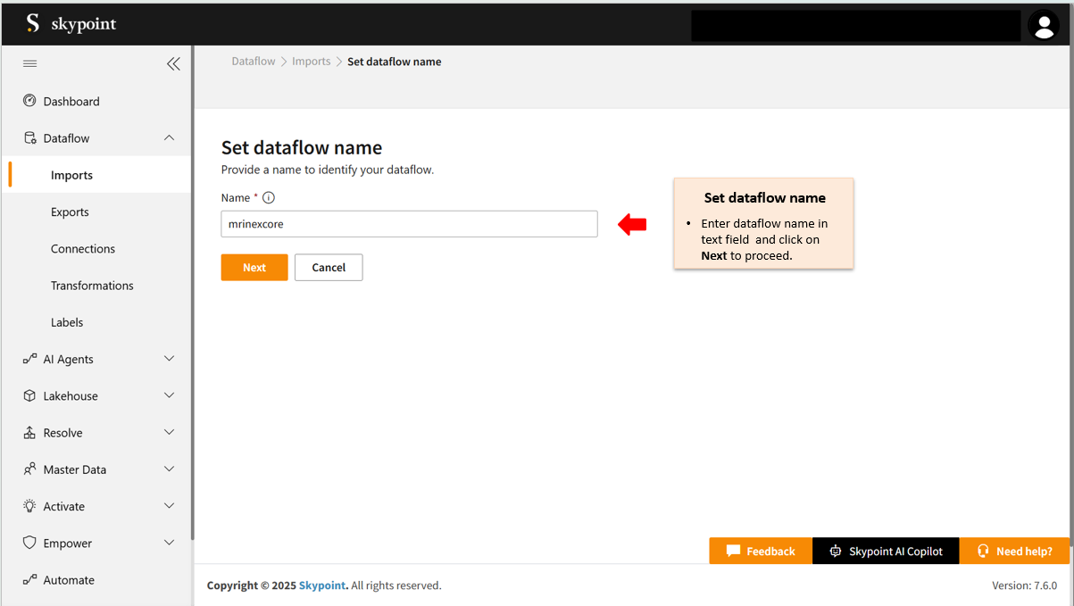 - Enter the desired name for the dataflow in the Name text field.