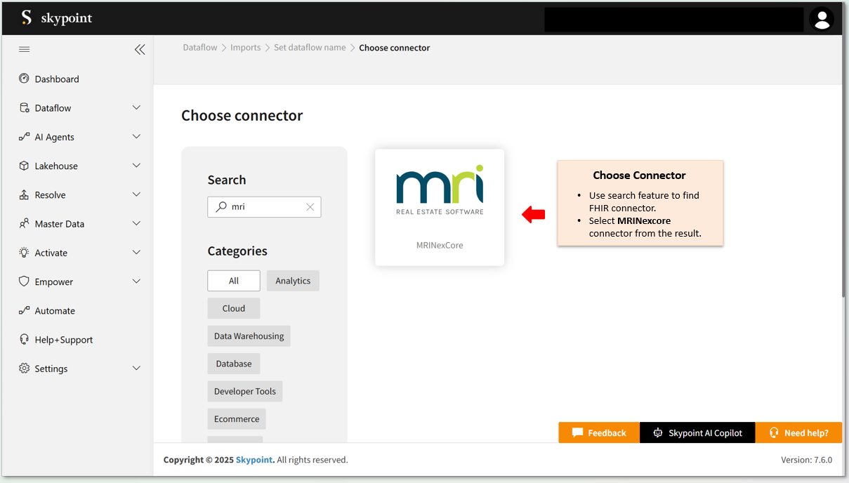 Follow the below steps to create and configure a new dataflow for the MRINexcore import connector: