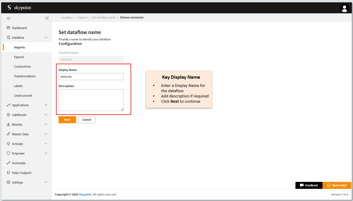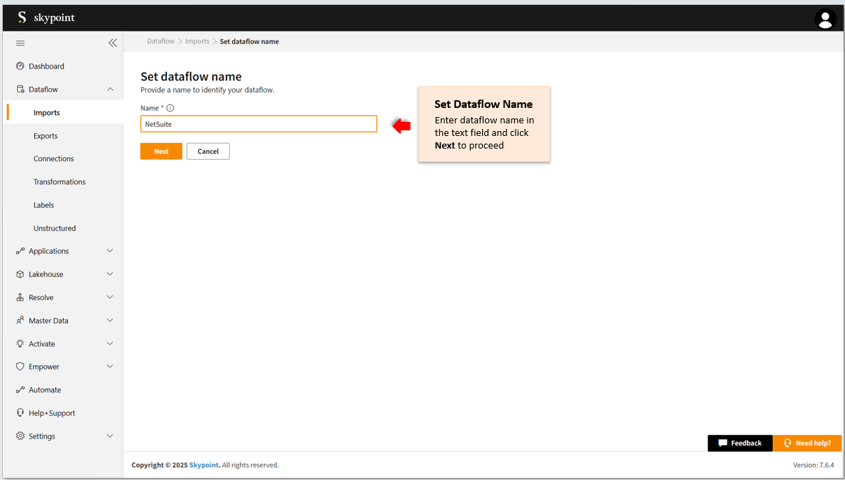 Follow the below steps to create a new dataflow for the NetSuite import connector: