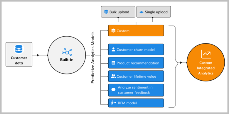 - AI-powered insights - Predict customer needs by unlocking powerful insights using pre-built AI and ML models or custom models.