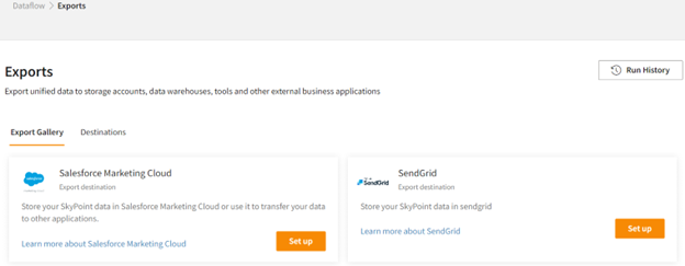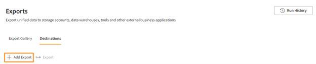 - In the Destinations tab, click Add Export to configure with the SendGrid connector.