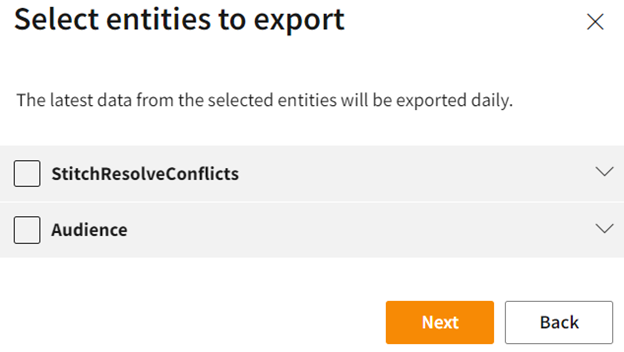 | Display name | Displays the name of the exported data. It can be different from the Export connection name. Also, you can change this later. |