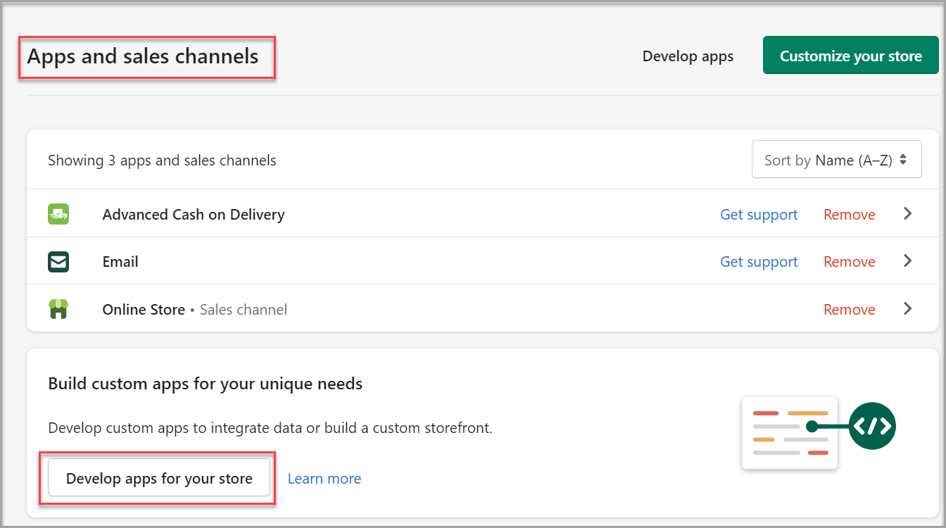 - Click Develop apps for your store.