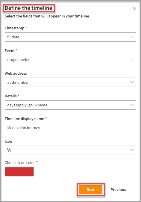 Follow below steps to select the fields that will appear in your timeline:- Select Timestamp from the drop-down list.