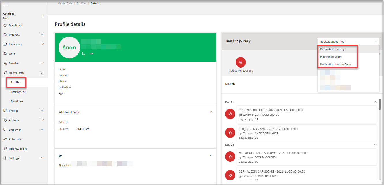 - Copy a customer Skypoint id and go to Master Data > Profiles.