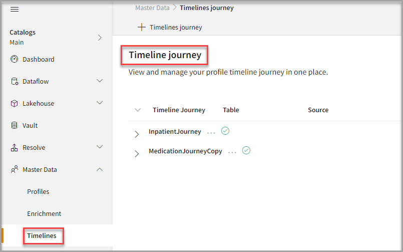 Follow the below steps to create a new timeline journey:- Go to Master Data > Timelines.