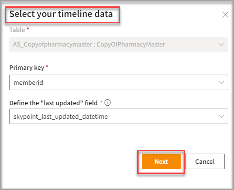 You must at least have one Master Data profile set up in the Skypoint AI studio and a transactional table imported in Dataflow > Imports.To create a Timeline journey