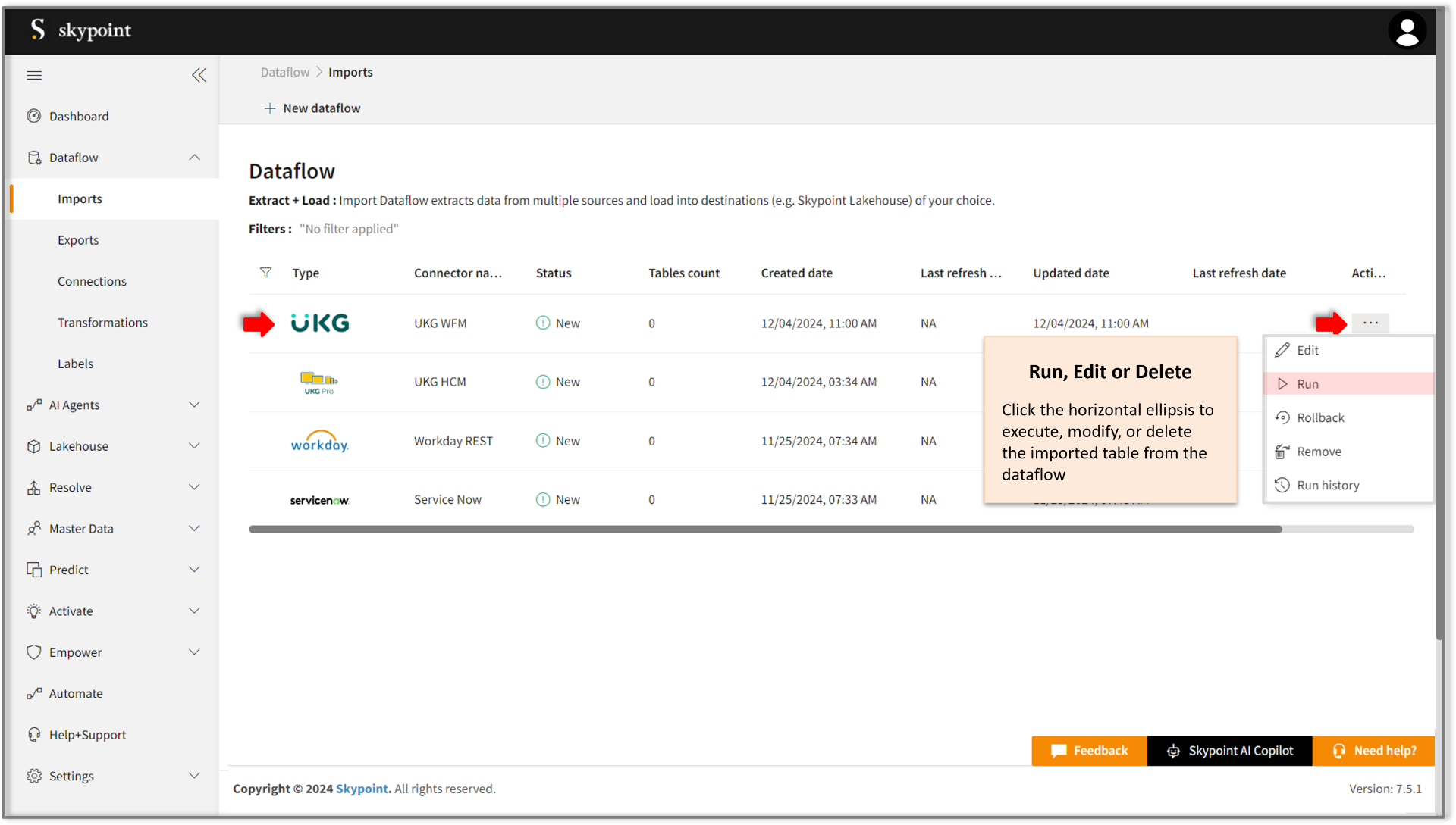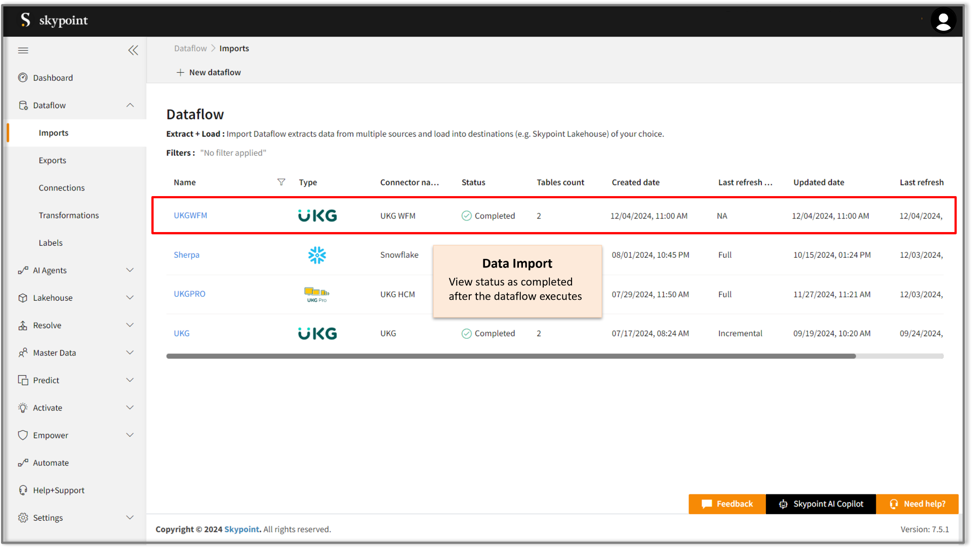 - Navigate to Dataflow > Imports.