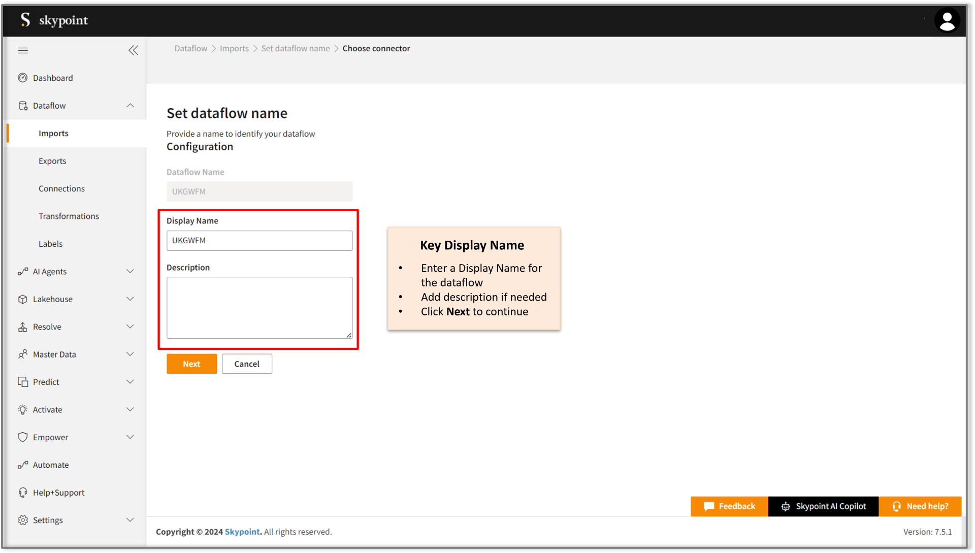 - Enter the Display Name for your dataflow in the provided text field.