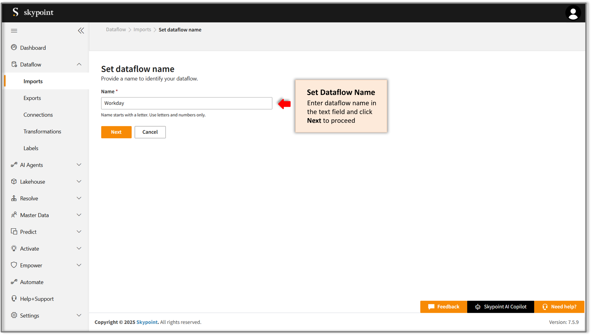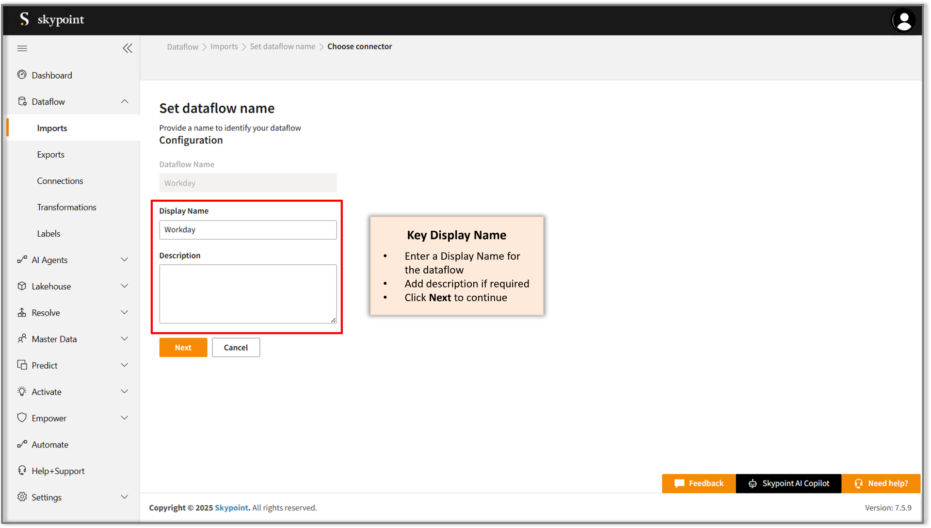 Follow the below steps to create and configure a new dataflow for the Workday import connector: